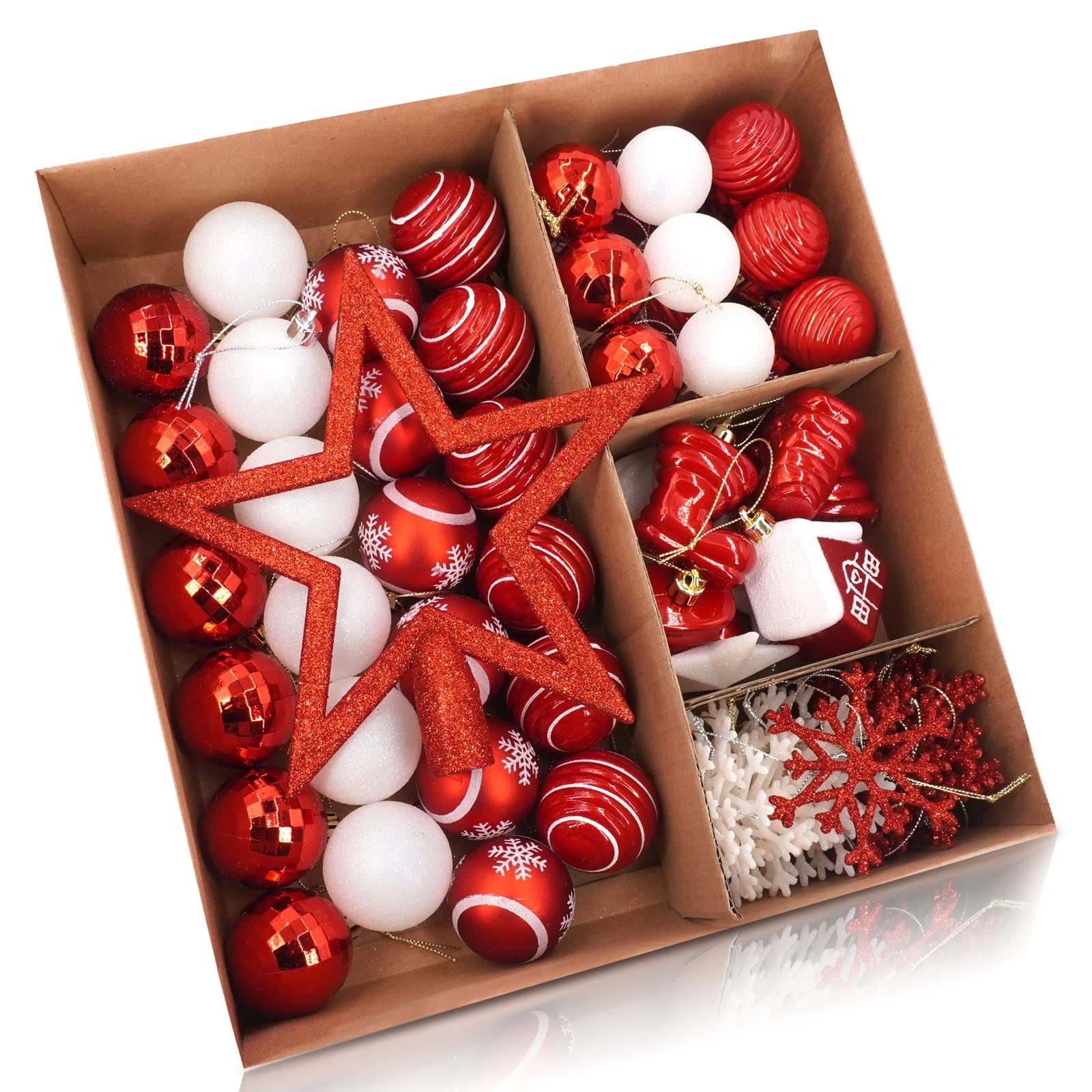Transforma tu árbol en un espectáculo deslumbrante con este Set Navideño de 106 piezas, que incluye esferas pequeñas, adornos variados y una estrella brillante. Sus diseños elegantes en rojo y blanco aportan luz, color y un estilo festivo incomparable.