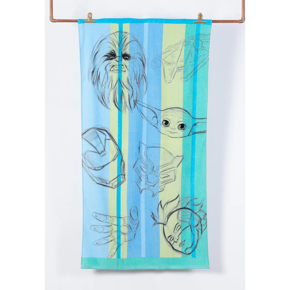 Celebra un siglo de magia con esta Toalla de Playa con Bolso 100 Años Disney, una edición especial que reúne a varios personajes icónicos en estilo boceto: Chewbacca, Baby Yoda, Iron Man, Black Panther y más. Su fondo en tonos celeste, verde y azul le da un look moderno y versátil, perfecto para niños, jóvenes y coleccionistas fanáticos de Disney y Marvel.