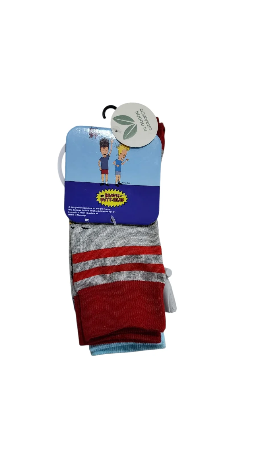 Revive el humor rebelde de los 90 con estos originales calcetines largos Beavis and Butt-Head, perfectos para fanáticos de la icónica serie de MTV. Su diseño combina franjas en tonos gris, rojo y celeste, logrando un estilo llamativo y cómodo para el uso diario.