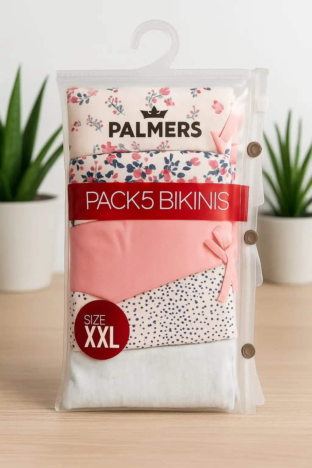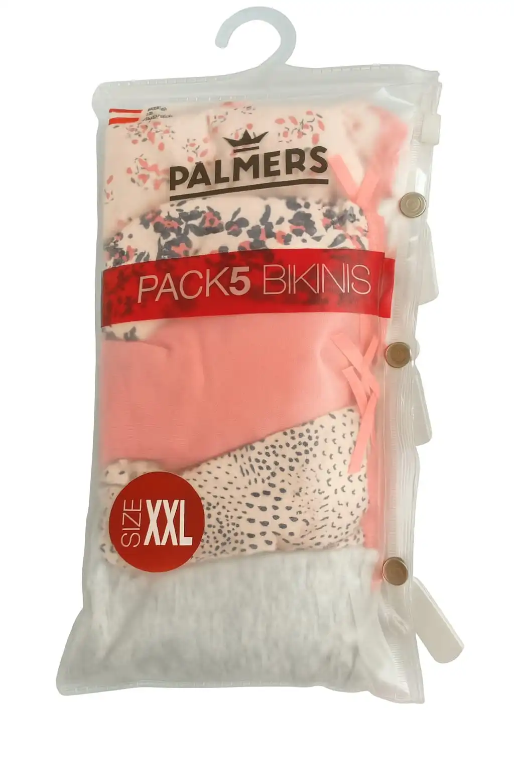Pack de 5 calzones Palmers modelo bikini, suaves, cómodos y con diseños variados. Talla XXL.