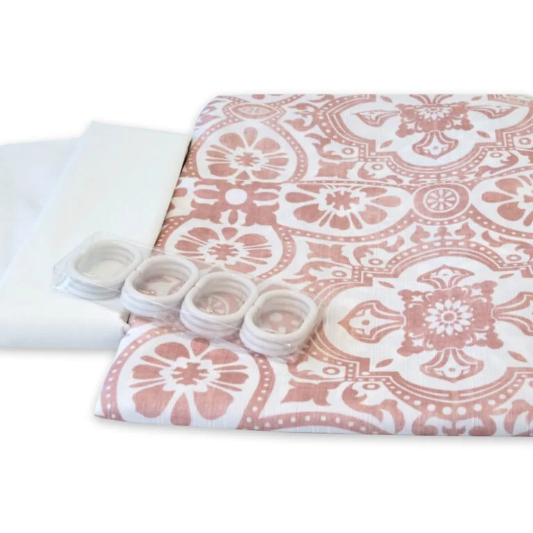 La cortina principal está fabricada en 100% poliéster, un material liviano, de secado rápido y fácil mantenimiento, ideal para evitar la acumulación de humedad. Además, incorpora un forro PEVA de alta resistencia, que actúa como barrera adicional protegiendo la cortina decorativa y extendiendo su vida útil.