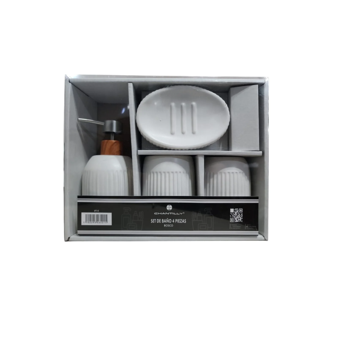 Renueva tu baño de forma práctica y elegante con el Set de Baño Chantilly de 4 Piezas. Diseñado para ofrecer funcionalidad y una estética moderna, este set es perfecto para organizar tus accesorios esenciales del baño sin perder estilo.