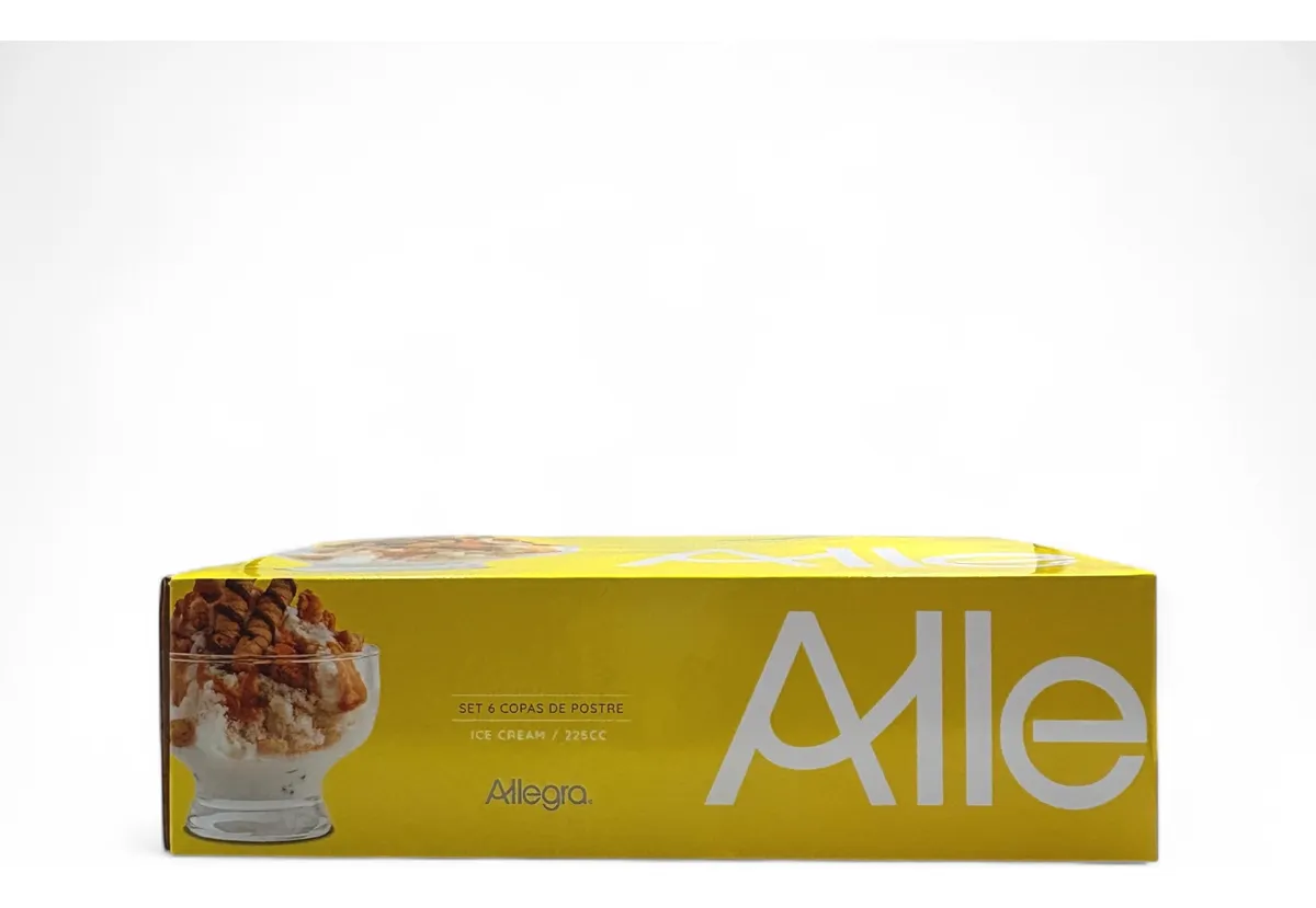 Set 6 copas de postre Allegra Ice Cream de 225 cc. Vidrio resistente, diseño elegante y perfecto para helados, gelatinas y mousse.