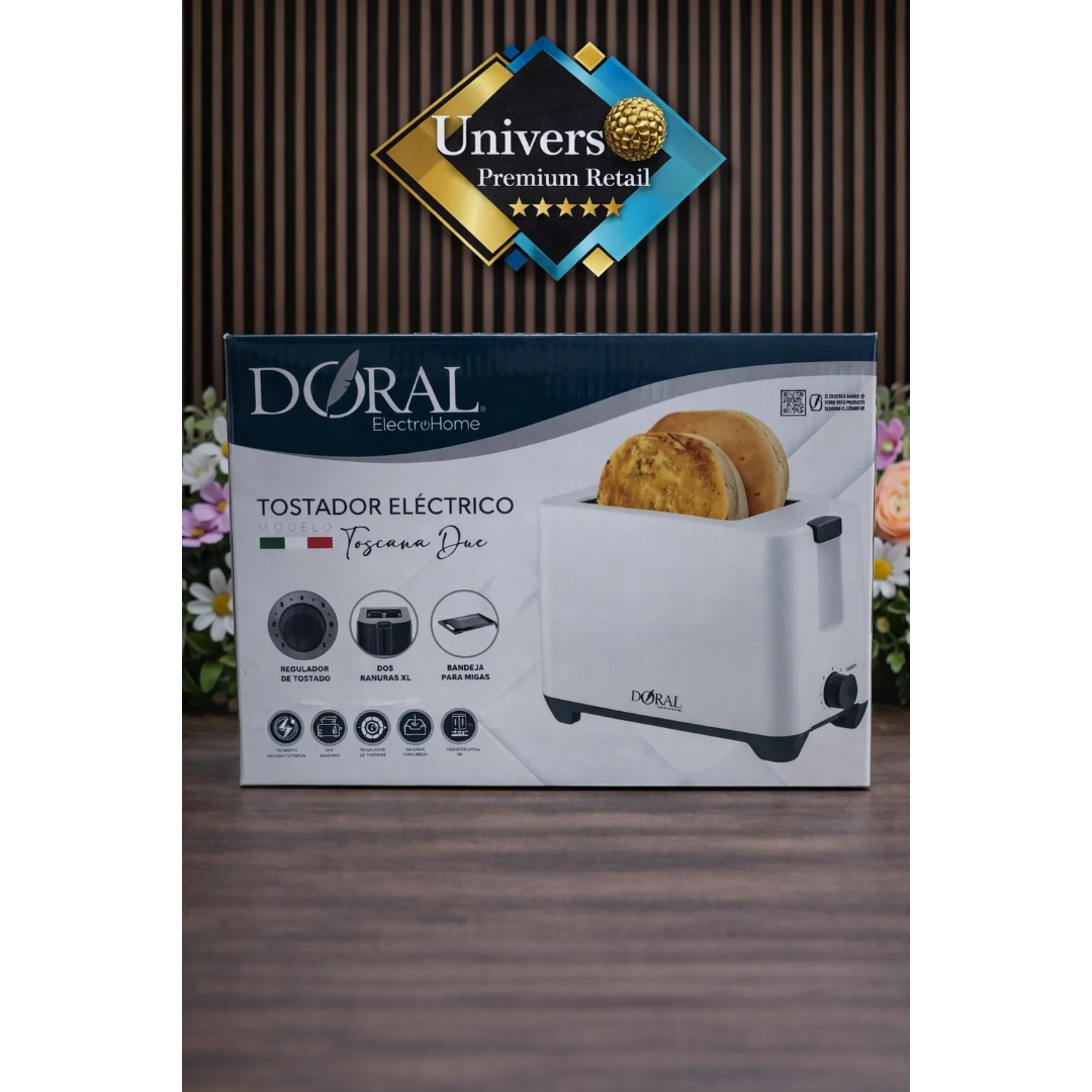 El Tostador Eléctrico DORAL ElectroHome Toscana Due combina diseño moderno, funcionalidad y eficiencia para acompañar tus desayunos y colaciones diarias. Gracias a sus dos ranuras XL, permite tostar distintos tipos de pan de manera uniforme, desde rebanadas delgadas hasta panes más gruesos.