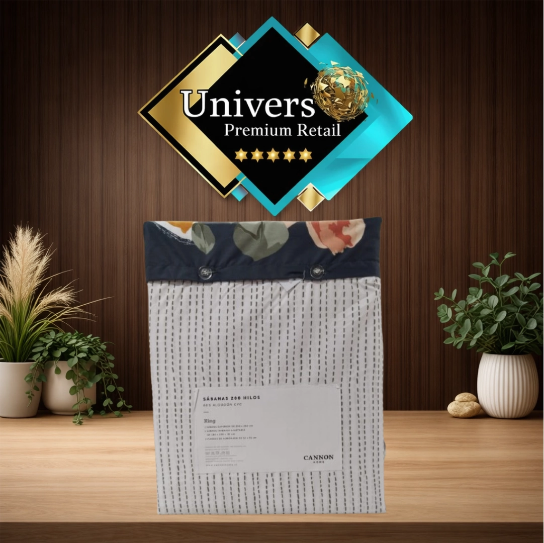 Dale color y estilo a tu dormitorio con el juego de sábanas Cannon Home 200 hilos, modelo Sanke, en tamaño King (2.5 plazas). Su tela es suave y cómoda, ideal para el uso diario, con un diseño estampado moderno que realza tu cama y combina perfecto con ambientes actuales.
