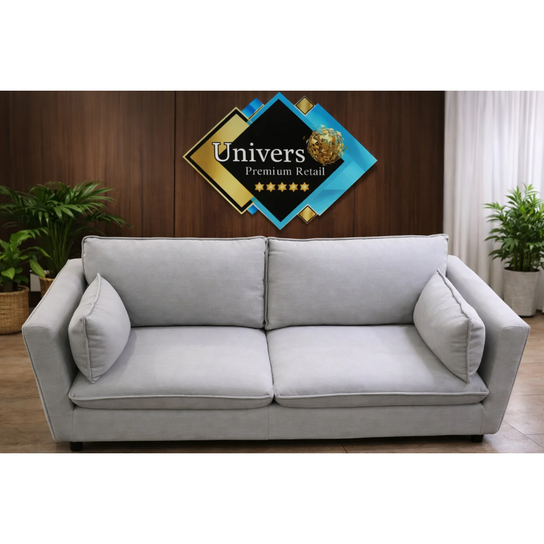 Sillón 2 cuerpos tapizado en gris claro, cómodo y elegante. Ideal para living o sala de estar, con diseño moderno y cojines decorativos incluidos.